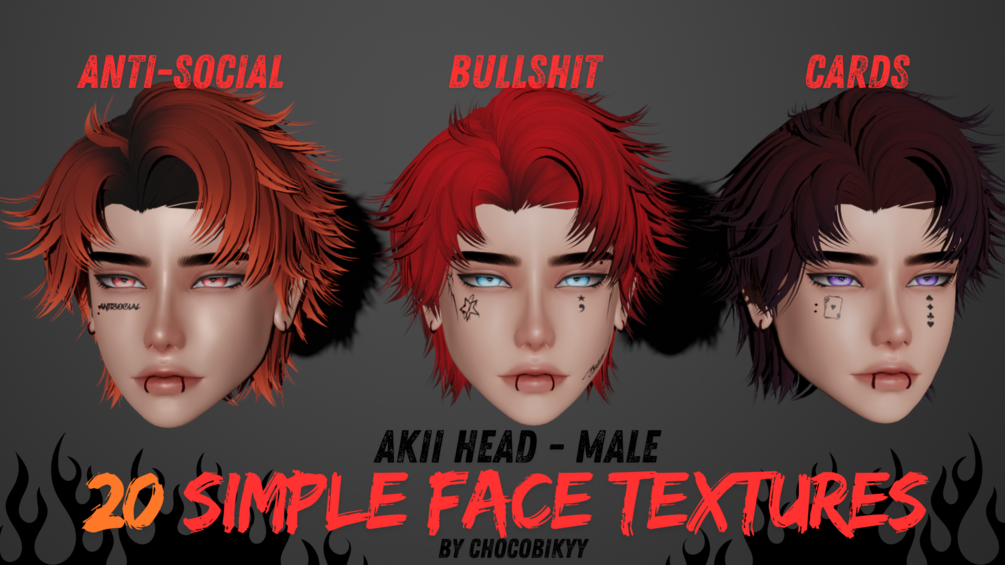 Akii Head 20 Simple Face Textures - MALE ONLY